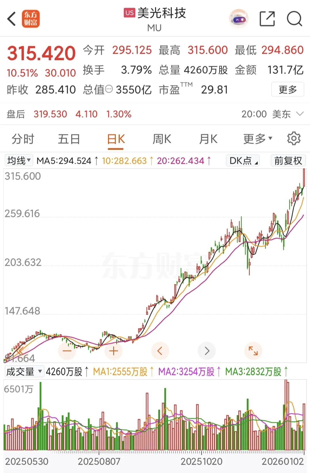 当地时间1月2日,美股芯片股普涨,费城半导体指数单日大涨4.01%,三倍做多半导体ETF单日涨超12%。个股方面,闪迪涨近16%,西部数据涨近9%,英伟达、高通、博通跟涨;美光科技涨超10%、阿斯麦涨逾8%,日月光半导体涨超4%,三股均创新高。